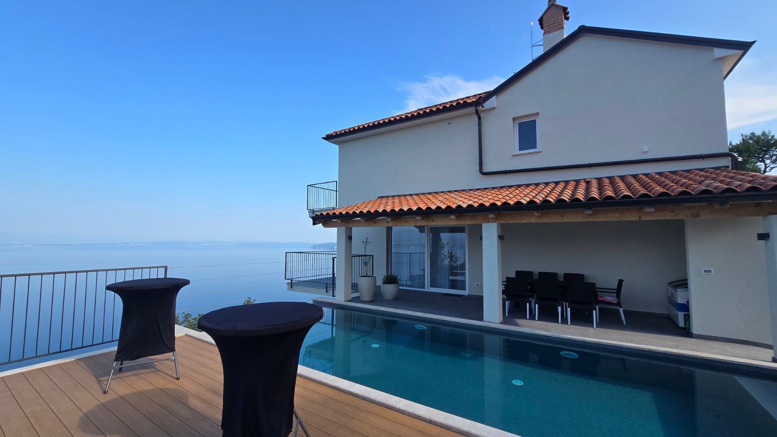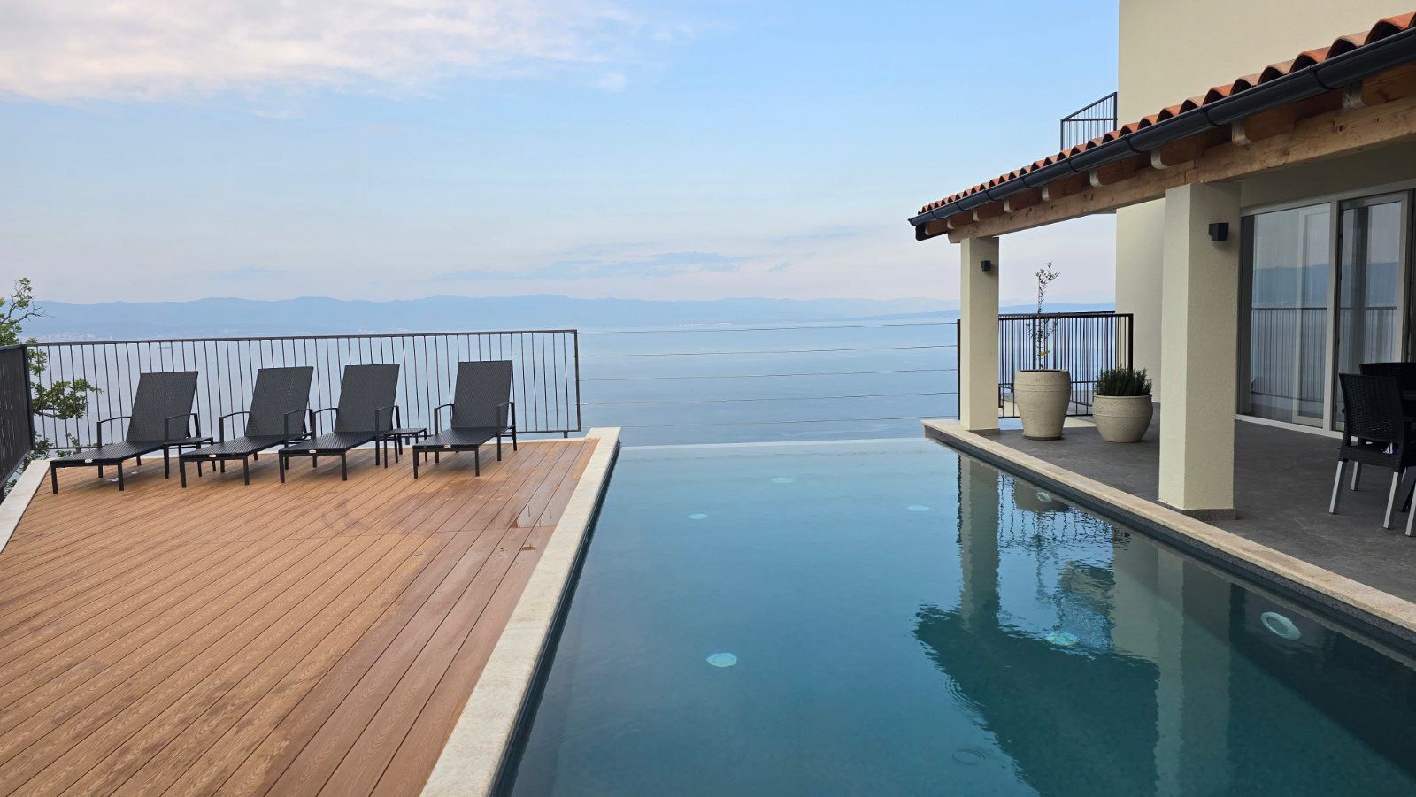 Smještena nedaleko od Opatije, u mirnom mjestu Obrš, ova moderno uređena vila idealna je za odmor s obitelji ili prijateljima. Uživajte u privatnom vanjskom bazenu (32 m²), sunčajte se na ležaljkama ili pripremite večeru na roštilju pod otvorenim nebom. Vila nudi potpunu udobnost za 8 gostiju – s 4 prostrane spavaće sobe, 4 kupaonice i stilskim interijerom.