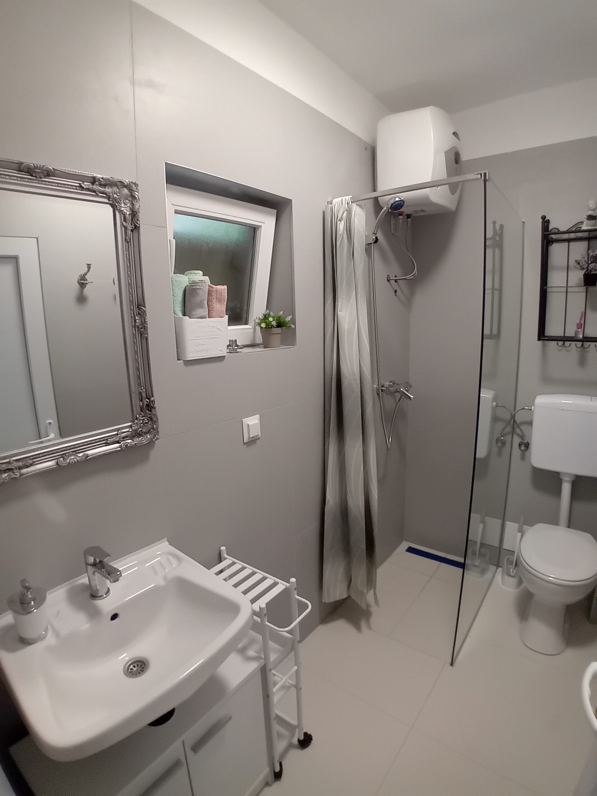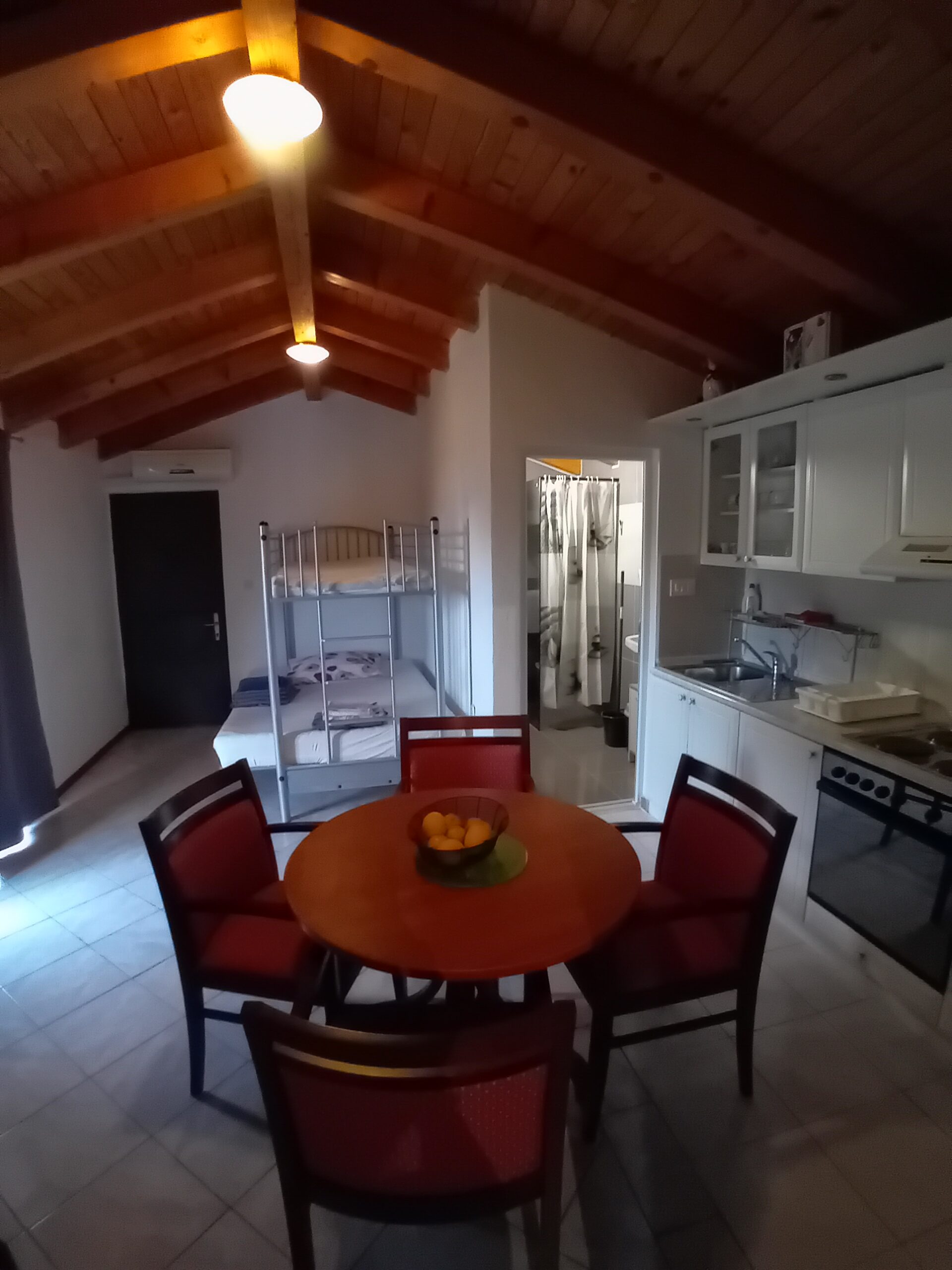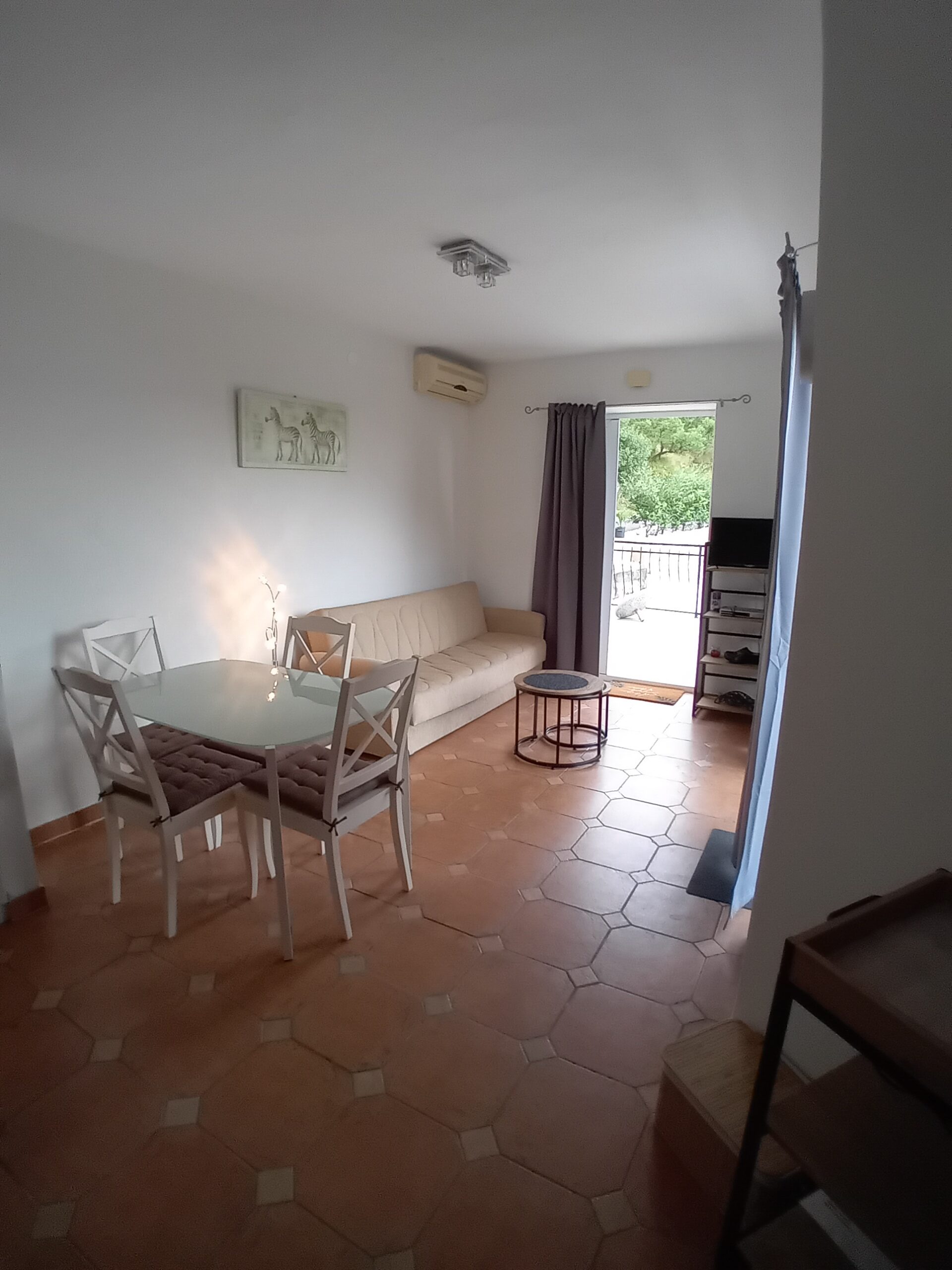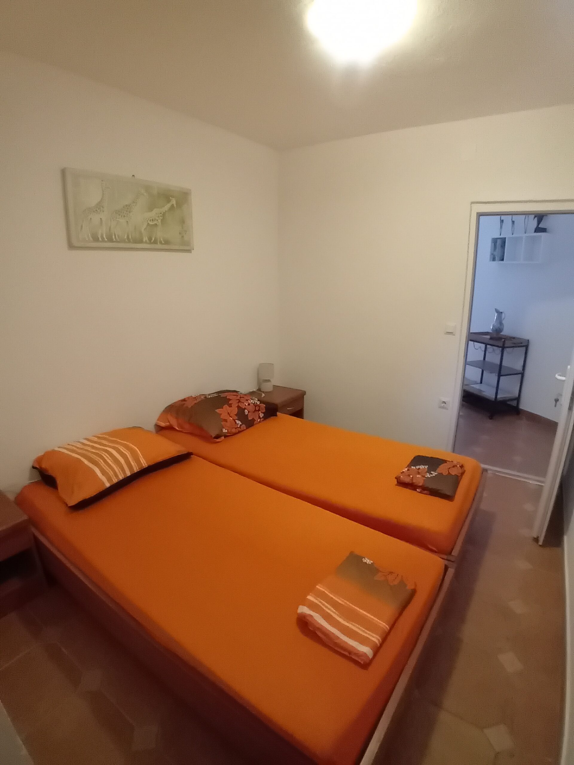 Apartman br. 3 – sa terasom pogled na more, spavaća soba, dvevna soba sa kuhinjom i pomoćni ležaj, kupaonica .
